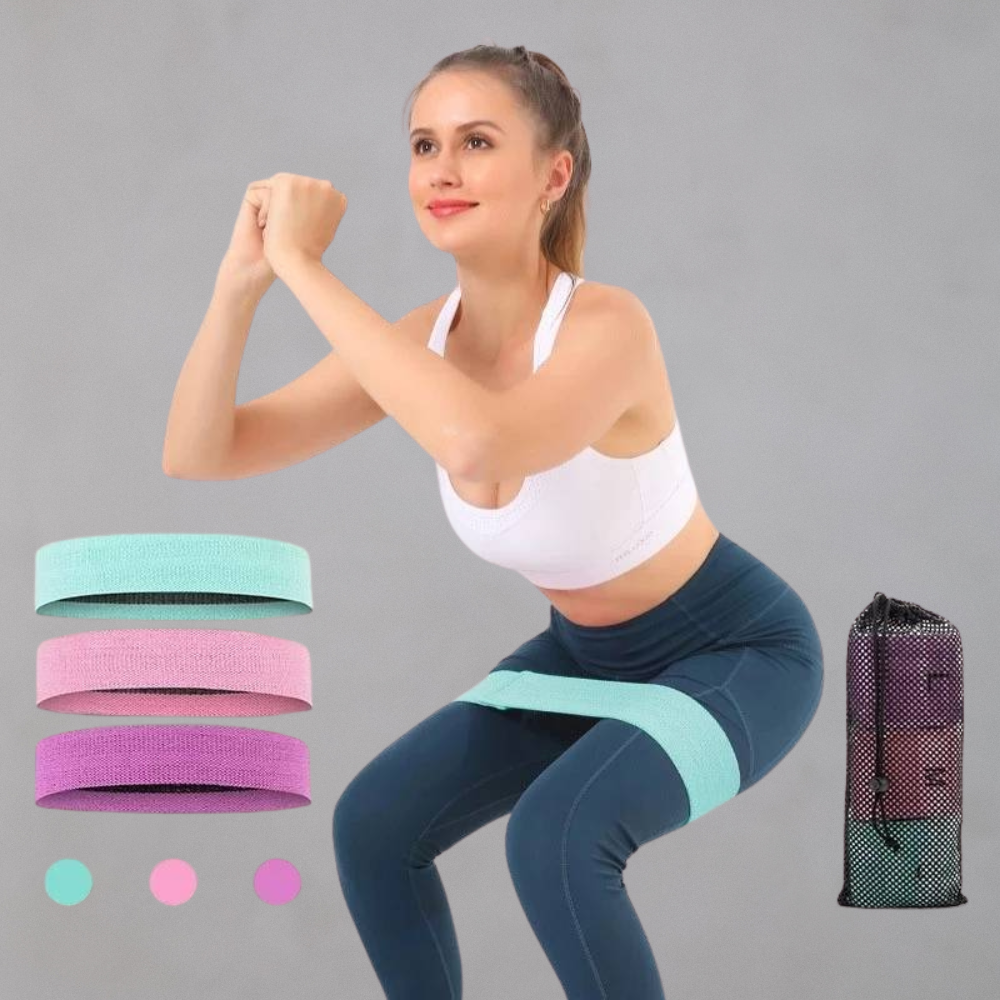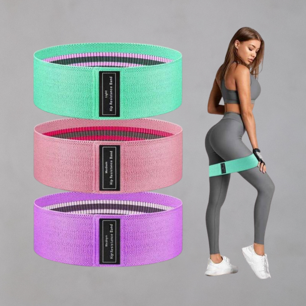 Transforma tus rutinas con este set de 3 bandas de resistencia (ligera, media y pesada), diseñadas para acompañarte en cada nivel de progreso.